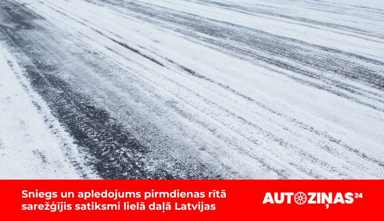 Sniegs un apledojums pirmdienas rītā sarežģījis satiksmi lielā daļā Latvijas